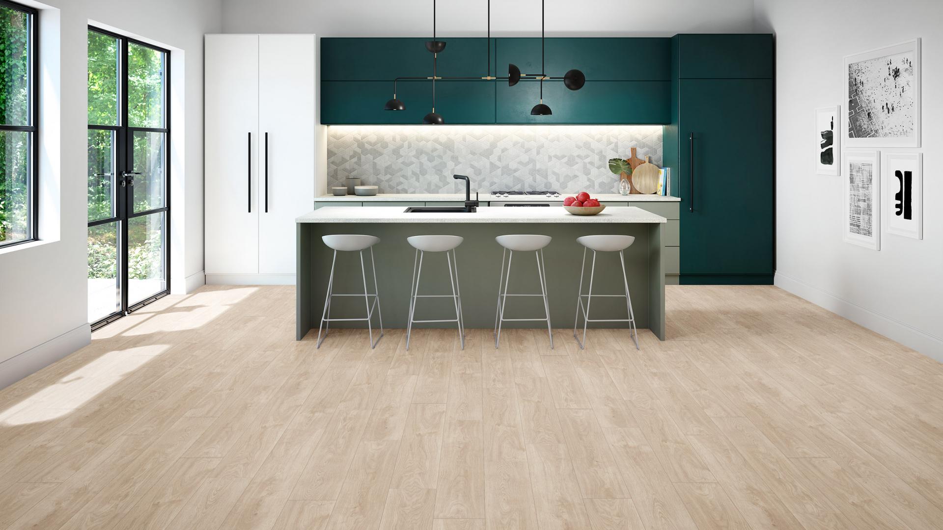 Montane’s wide 7½” planks feature a new wood-embossed, ultra-matte finish and 4-sided color-matched bevels. The European design inspired colorway comes in clean decors with few knots and a beautiful cathedral and rift characteristic.