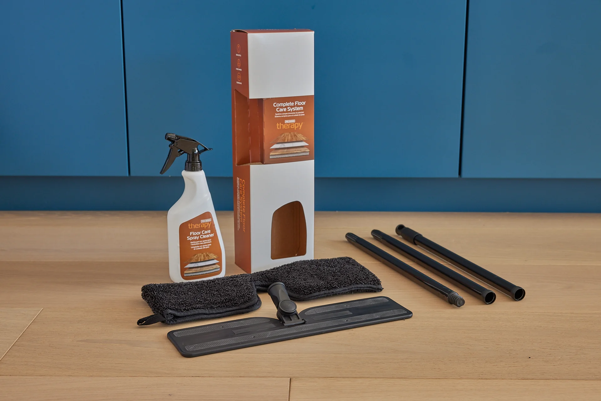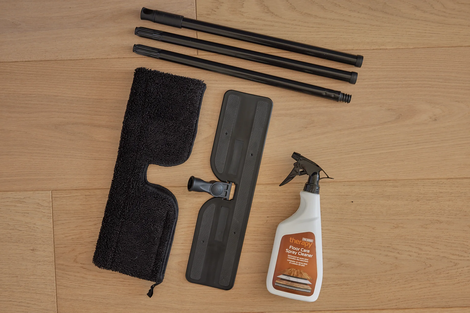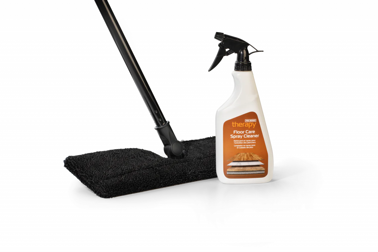 The Pro Series Therapy Starter Kit includes Pro Series Therapy Spray Cleanser, an aluminum three-part handle mop with a premium washable microfiber cleaning pad.